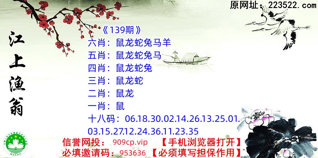 | 341期:单【5391尾】双【2608尾】開:鼠06准 |